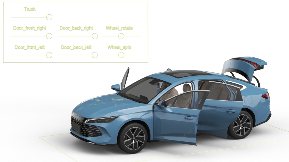 This 3D model depicts a detailed BYD Qin L DM-i Blue Hybrid Sedan. It features an accurate representation of the vehicle's exterior, including its sleek lines, modern headlights, and a panoramic sunroof. The rigged version allows for interactive elements like opening doors and trunk, enhancing its utility for various applications.
