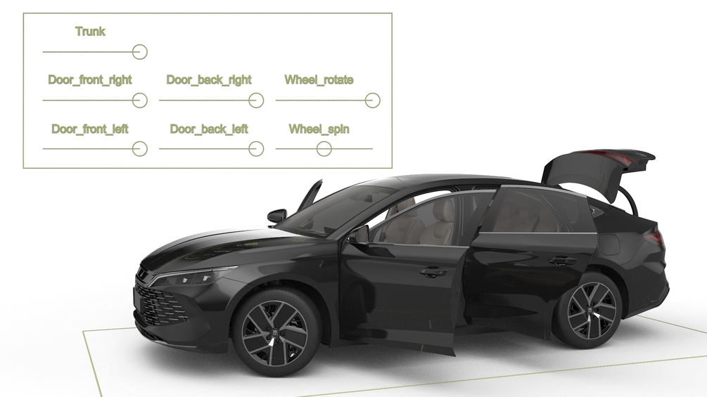 The BYD Qin L DM-i Space Black rigged 3D model, with dimensions of 210.95 x 482.23 x H150.61cm, showcases a sleek, modern sedan design. It features a detailed exterior, including functioning doors and trunk, making it ideal for realistic visualizations, simulations, and interactive applications. The model is optimized for high-quality rendering and versatile use.